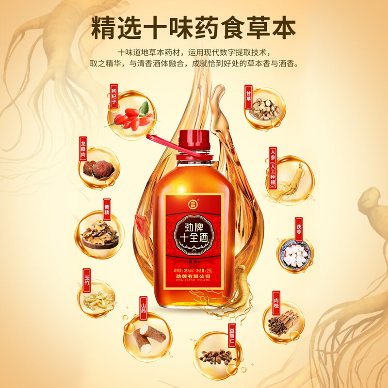 劲牌劲酒 十全酒 35度 2.5L大桶 礼盒装价格:139.00元!