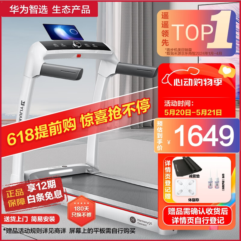 华为智选亿健跑步机家用降噪可折叠走步机精灵S7免安装宽大跑台 APP控制价格:1649.00元!
