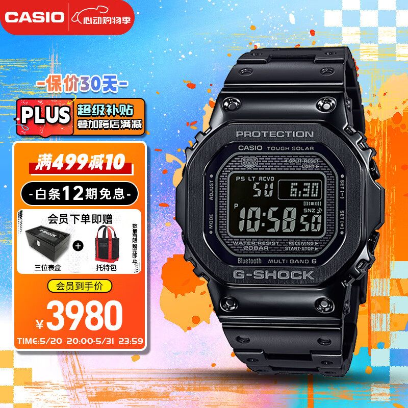 卡西欧(CASIO)手表男士G-SHOCK经典小方块黑武士电子表520礼物GMW-B5000GD-1价格:3990.00元!