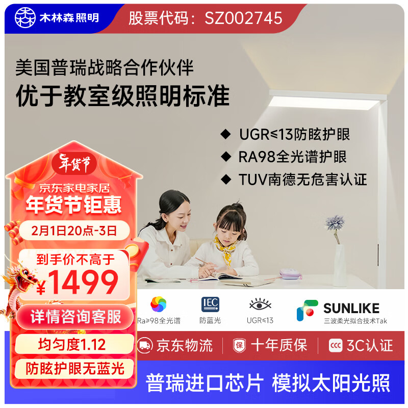 木林森照明护眼台灯学习立式全光谱太阳光落地大路灯儿童卧室【云度Pro】价格:1739.00元!
