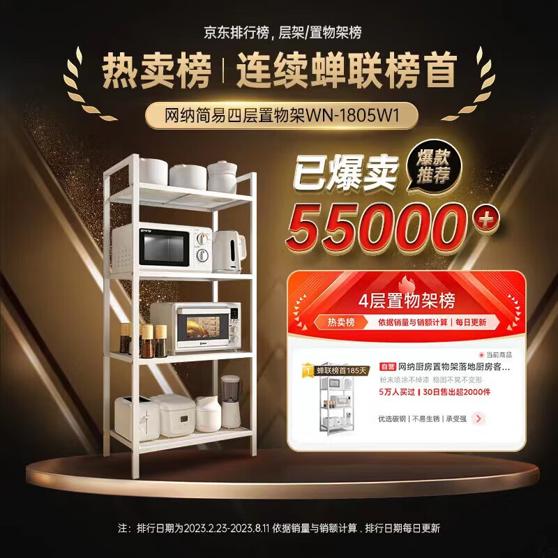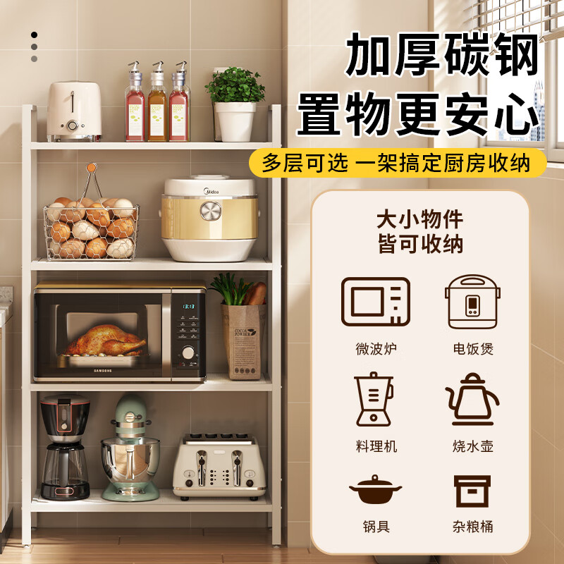网纳厨房置物架落地厨房钢制储物架微波炉架货架架子家用收纳架1805W1价格:69.90元!