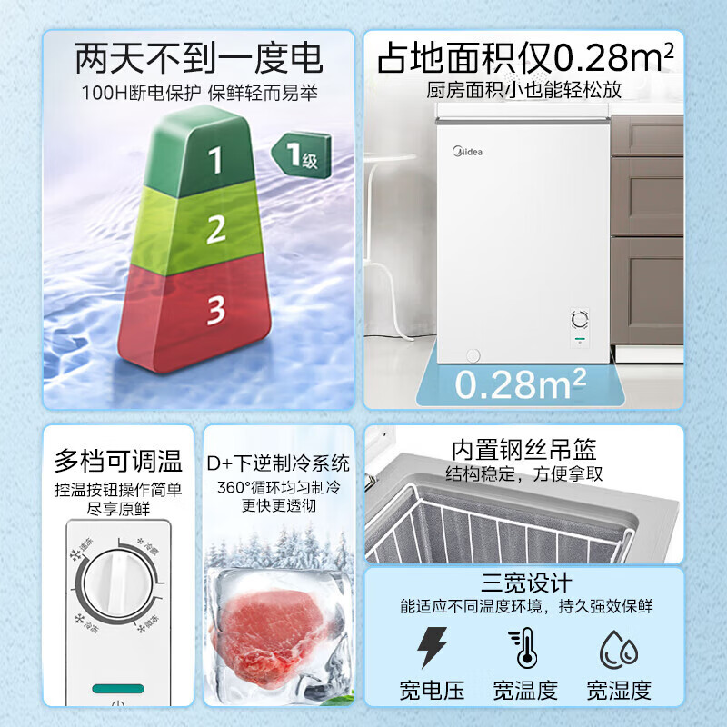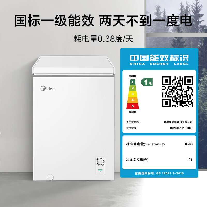 美的(Midea)101升小冰柜小型家用迷你冷柜冷藏冷冻 一级能效节能低霜租房囤货小冰箱101升 BD/BC-101KM(E) 新【可囤140斤肉】 101L价格:799.00元!