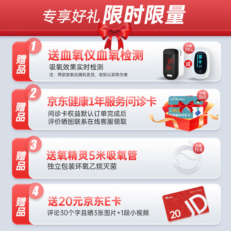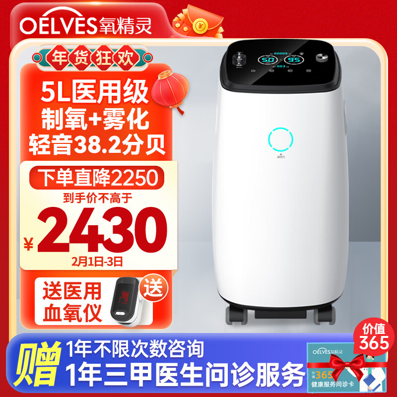 氧精灵5L升医用制氧机家用吸氧机 老人孕妇家庭氧气机 轻音低分贝升级款带雾化KJR-Y510W价格:4680.00元!