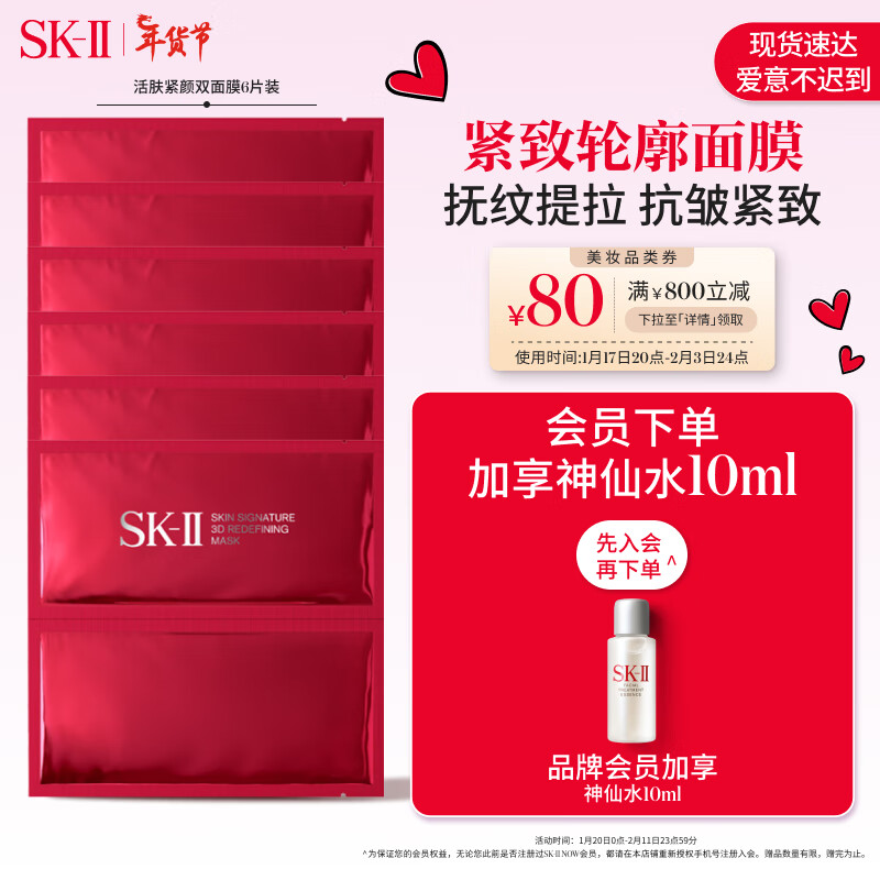SK-II活肤紧颜双面膜6片装sk2补水提拉紧致skii护肤品化妆品新年礼物价格:1180.00元!