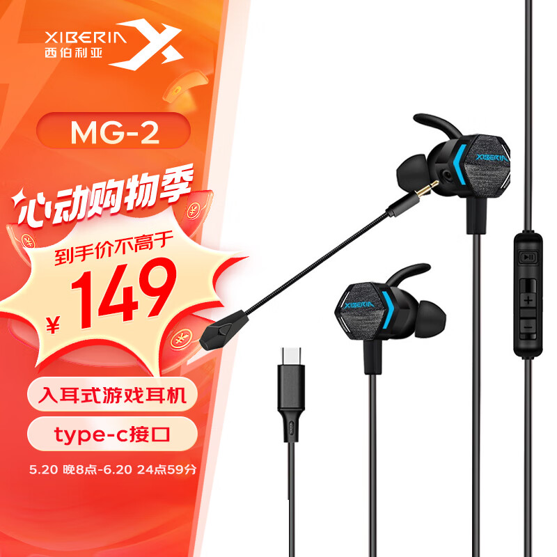 西伯利亚(XIBERIA)MG-2 type-c入耳式游戏耳机 扁头手游电竞耳麦 带线控震动吃鸡耳机带麦价格:179.00元!