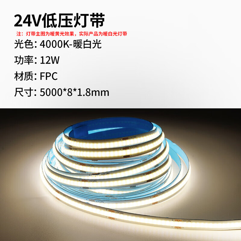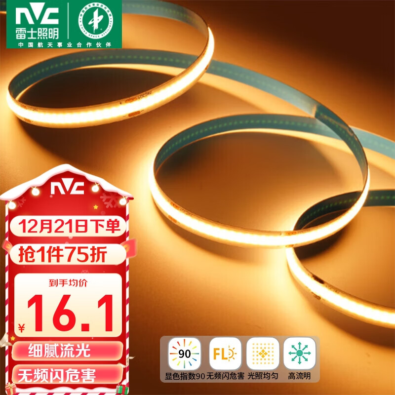 雷士(NVC)COB灯带24V低压灯条超亮5米装-暖白光-352灯珠/米-需购低压电源价格:97.30元!