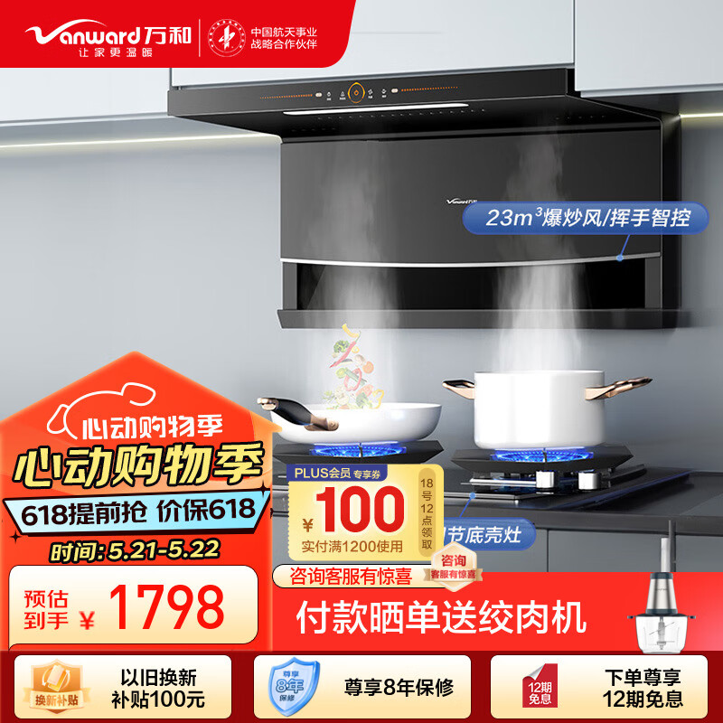 万和(Vanward)顶侧双吸7字型烟灶套装家用 23m3/min大吸力 智感热清洗 挥手控制 WL856+C5L90S(液化气)价格:1998.00元!