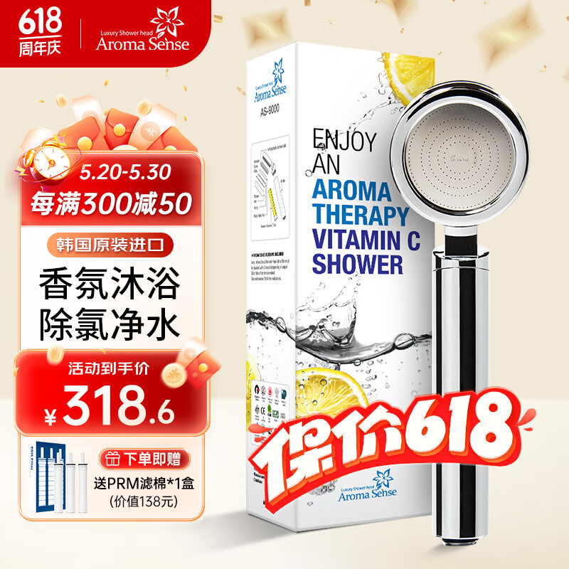 Aroma Sense淋浴花洒喷头增压韩国进口活性碳过滤除氯净水加压手持莲蓬头 AS9000花洒银色标配价格:388.00元!