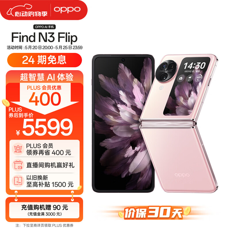 OPPO Find N3 Flip 12GB+256GB 薄雾玫瑰 超光影三摄 专业哈苏人像 120Hz屏 5G 拍照 AI 小折叠屏手机价格:5999.00元!