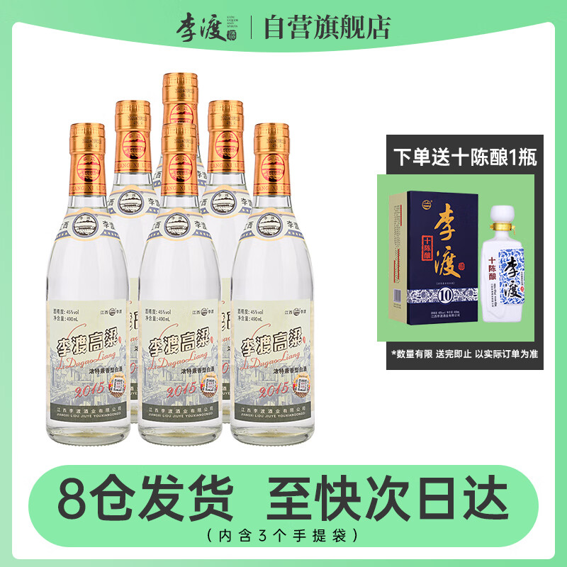 李渡 2015黄金版 兼香型白酒 45度 490ml*6瓶 整箱装价格:1299.00元!
