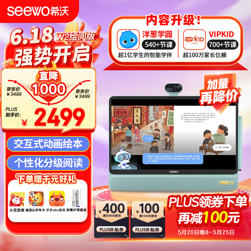 希沃学习机W2 绘阅版薄荷绿6G+256G 15.6英寸防眩光 类纸护眼平板电脑 家教机 AI学生平板 点读机价格:2599.00元!