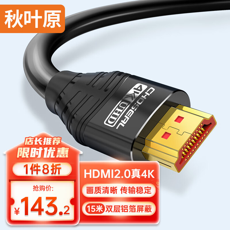秋叶原(CHOSEAL)HDMI2.0工程线4K数字高清线3D视频线电脑机顶盒连接电视投影仪显示器连接线15米DH550AT价格:179.00元!