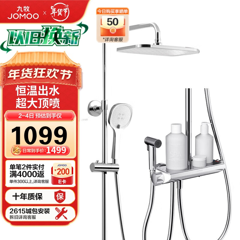 九牧 JOMOO 淋浴花洒套装 除垢喷枪恒温淋浴器26168-644/1B-1价格:1349.00元!