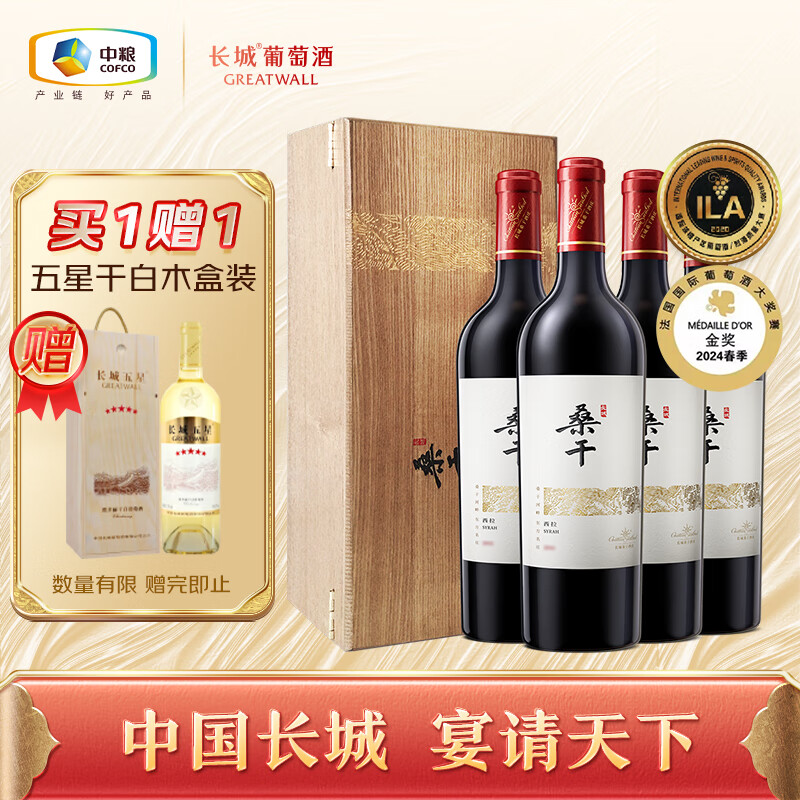 长城 桑干酒庄 西拉干红葡萄酒 木盒 750ml*4瓶 整箱装价格:4100.00元!