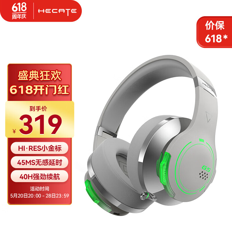 漫步者(EDIFIER)HECATE G5BT蓝牙游戏耳机头戴式带麦 【45ms低延时】吃鸡手游耳麦 适用黑鲨红魔华为 量子灰价格:338.00元!
