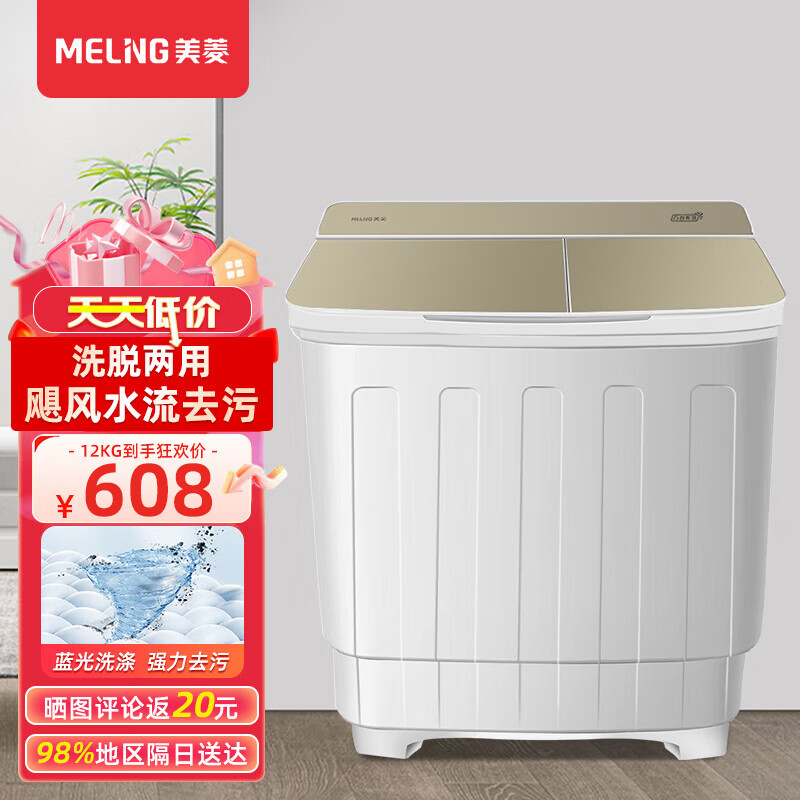 美菱(MELNG)12KG半自动洗衣机双缸家用宿舍租房大容量双桶洗脱分离强力去污 WP1222G 流光金价格:668.00元!