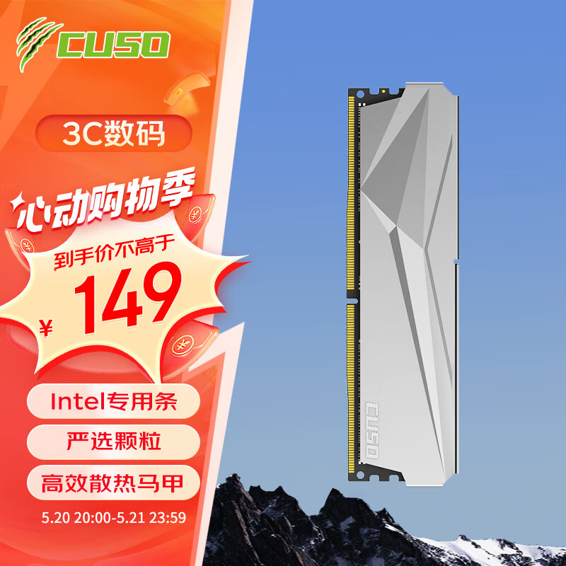 酷兽(CUSO)16GB DDR4 2666 台式机内存条 夜枭系列-银甲 intel专用条价格:149.00元!