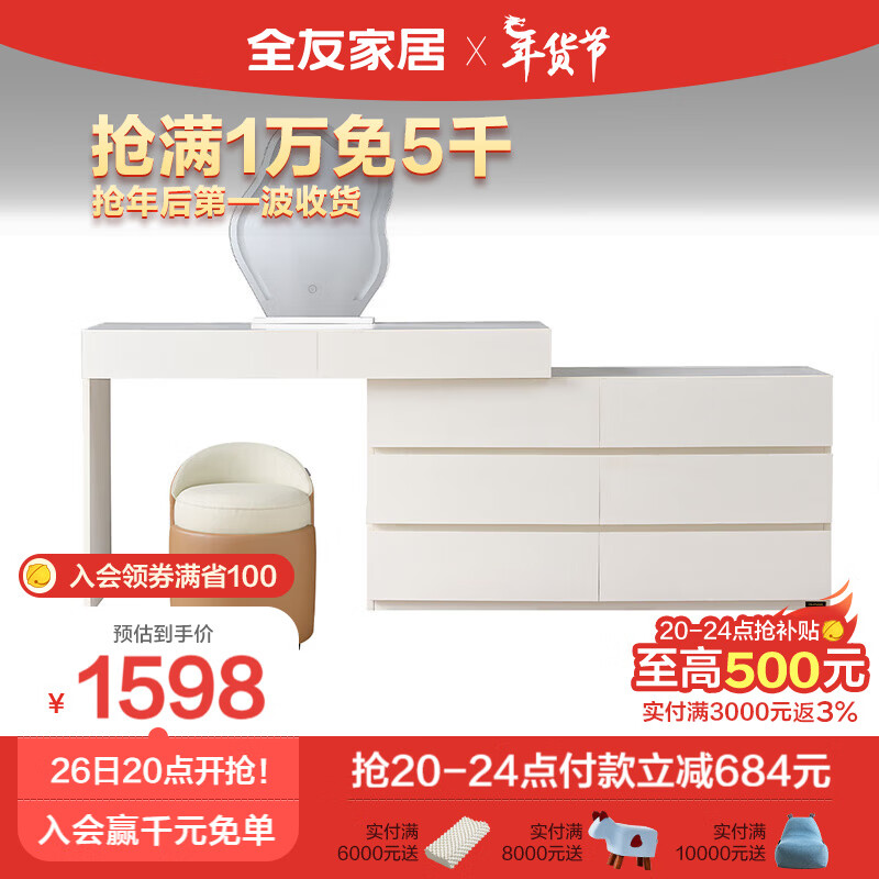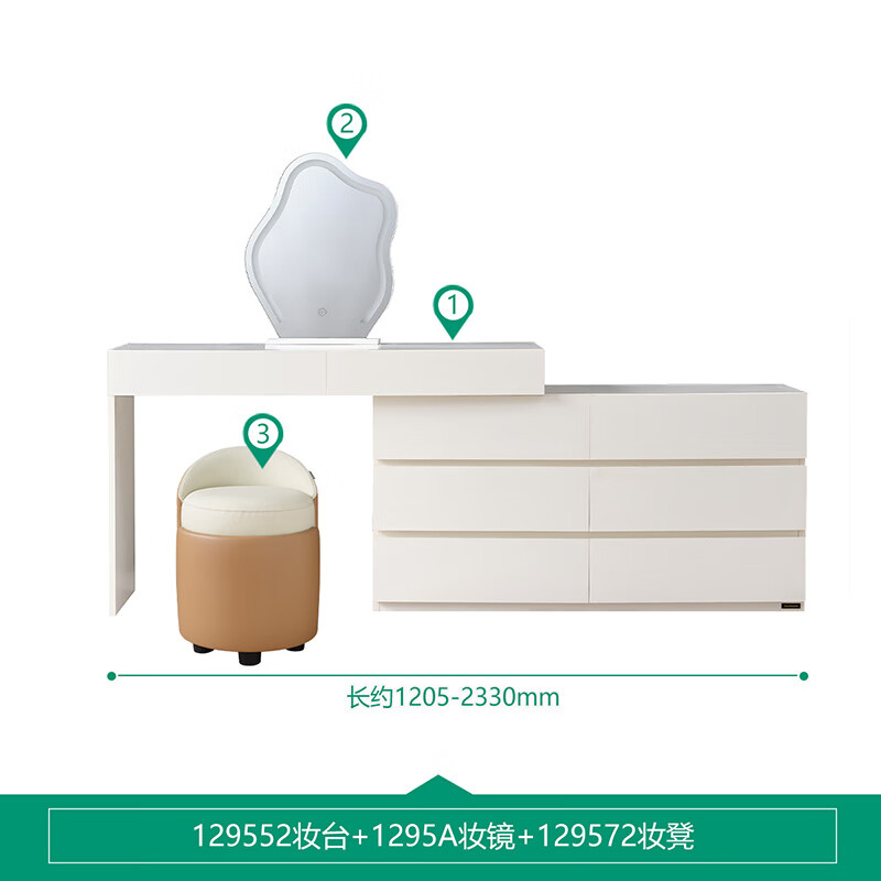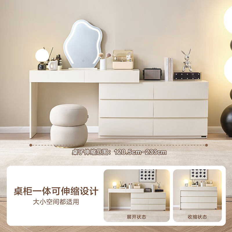 全友家居梳妆台卧室可伸缩妆台斗柜一体化妆台补光妆镜置物桌子129552价格:2282.86元!