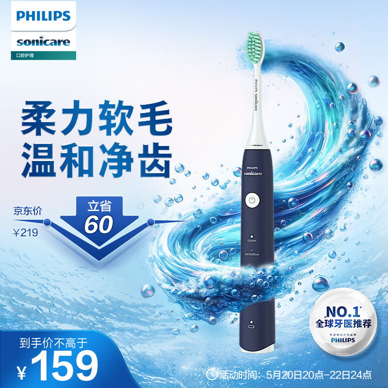 飞利浦(PHILIPS)电动牙刷S1成人 520情侣送男/女友 母亲节礼物 入门款 2种模式 洁齿护龈净力刷深蓝色HX2431/06价格:159.00元!