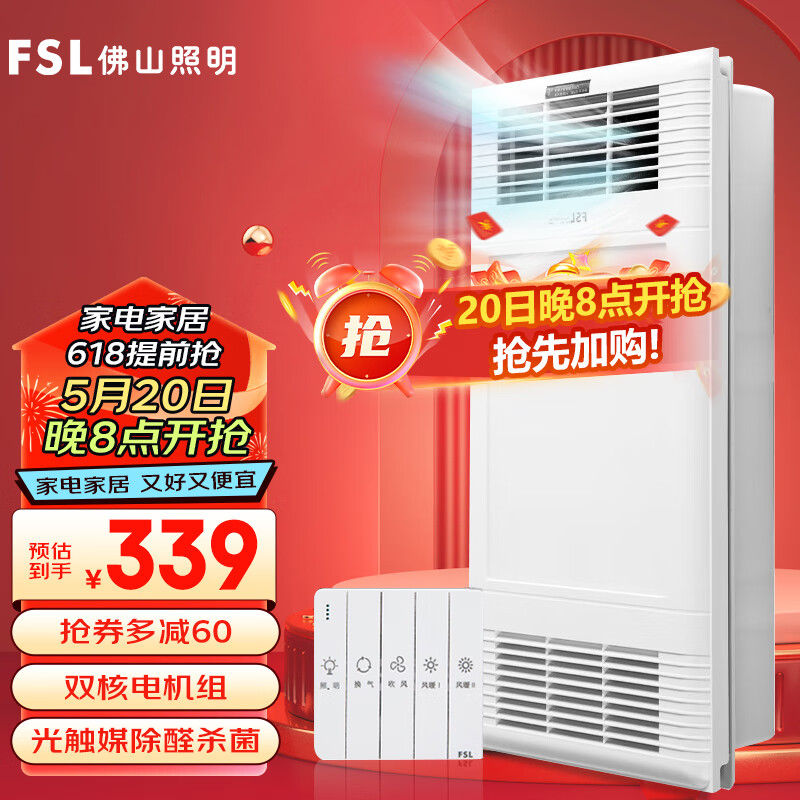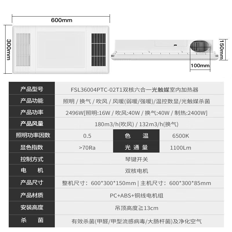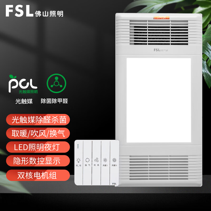 FSL佛山照明浴霸集成吊顶卫生间取暖器加热器换气照明光触媒浴霸T1价格:399.00元!