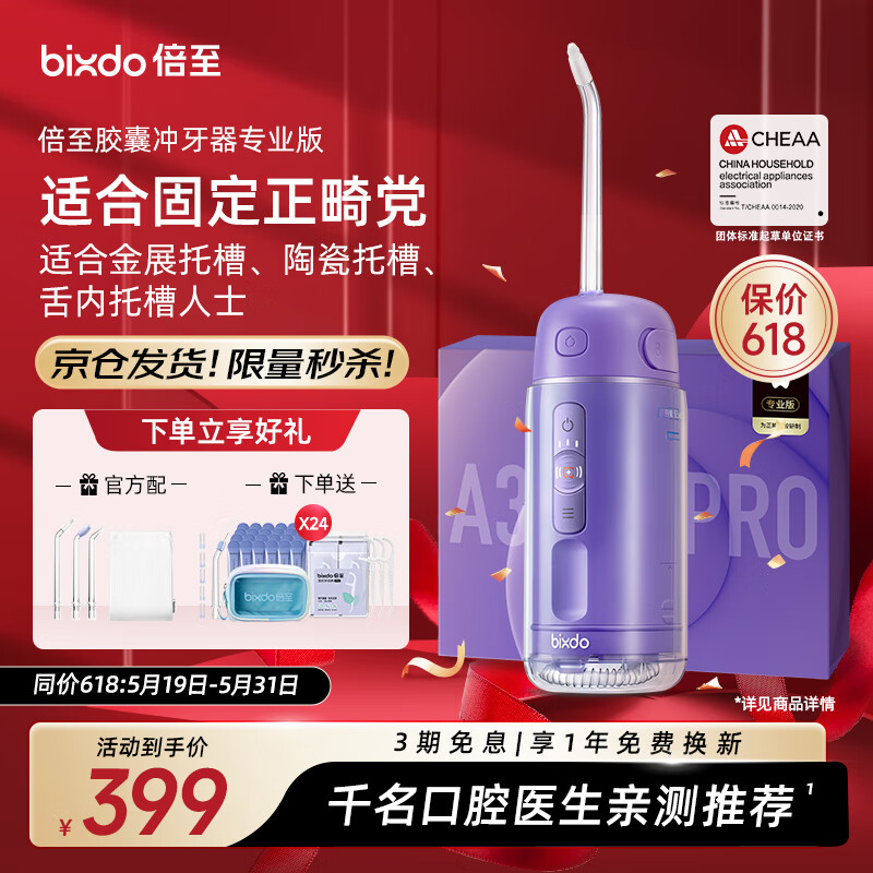 倍至(bixdo)冲牙器胶囊三代洗牙器水牙线美牙仪预防牙结石正畸适用伸缩便携儿童洁牙器情人节送男女朋友礼物价格:478.00元!