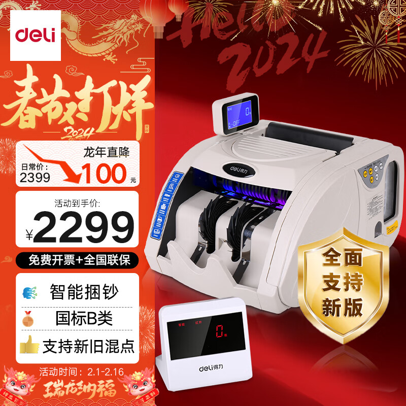 得力验钞点钞机 支持新版人民币 点钞验钞新版专用 国标B类自动捆钱捆钞 智能语音点钞机 3920S价格:2399.00元!
