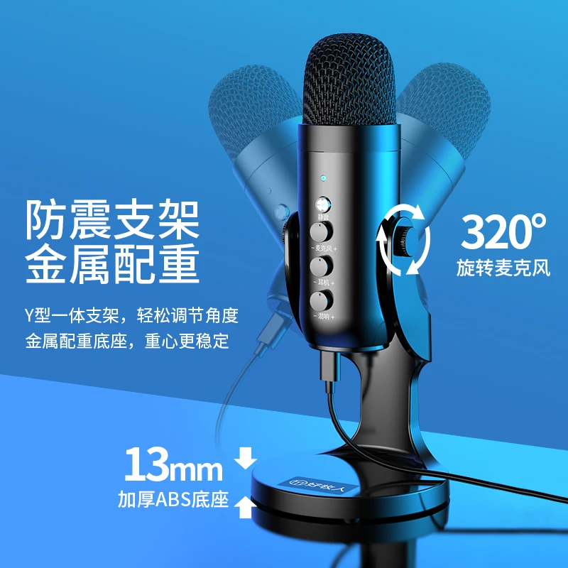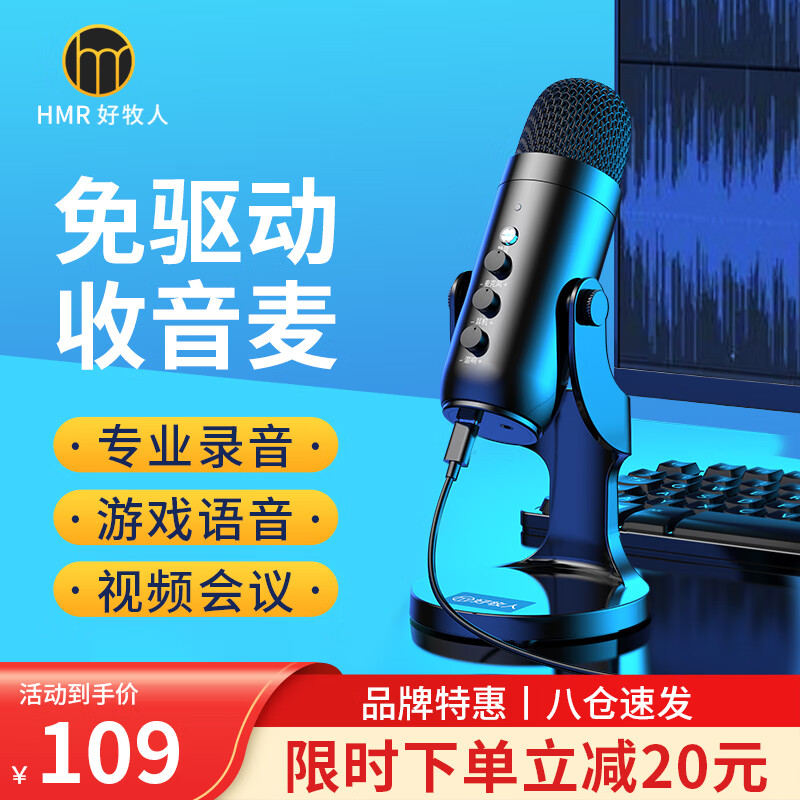 好牧人 麦克风电脑台式外置降噪话筒 直播K歌游戏语音网课教学视频会议USB笔记本专业录音配音电容麦 桌面圆盘支架款【内置声卡】即插即用价格:129.00元!