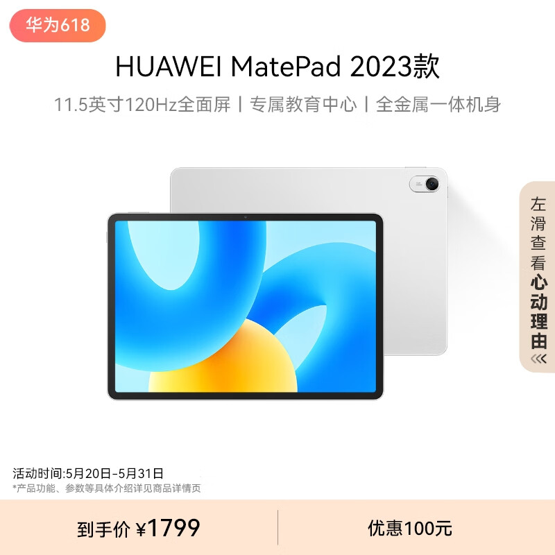 HUAWEI MatePad 2023款标准版华为平板电脑11.5英寸120Hz护眼屏学生学习娱乐平板8+256GB 冰霜银价格:1799.00元!
