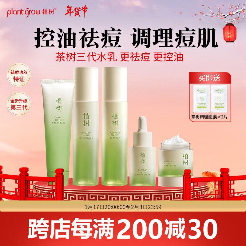 植树(plant grow)澳洲茶树三代水乳套装 补水控油祛痘 收缩毛孔 油痘肌护肤品礼盒价格:189.00元!