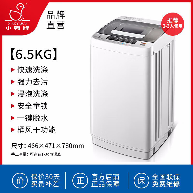 小鸭牌洗衣机全自动6.5kg 小型迷你波轮母婴儿童家用宿舍租房预约健康洗护洗脱一体 WBH6539P价格:446.00元!