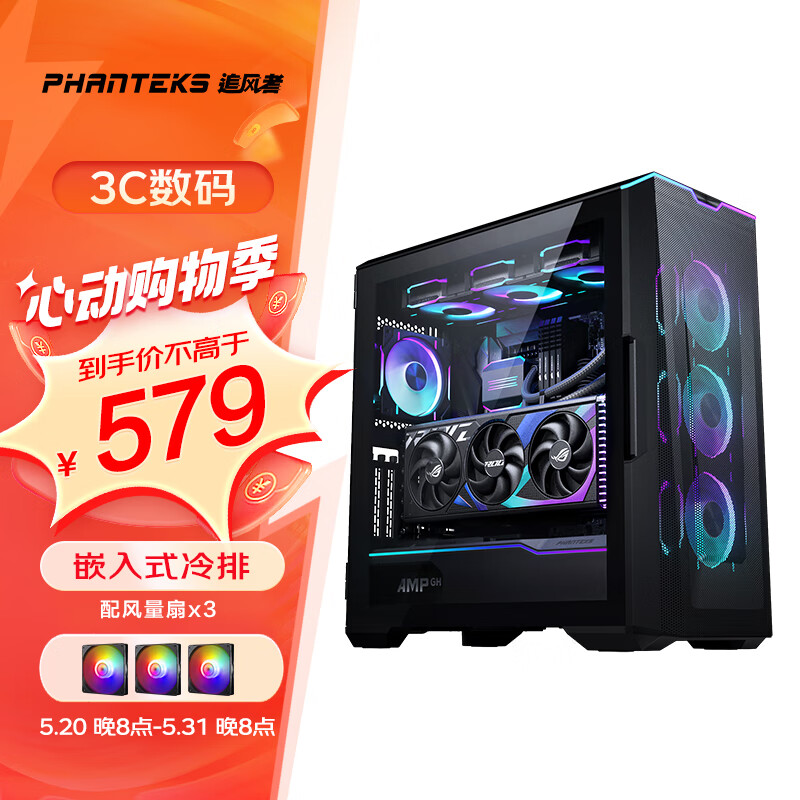 PHANTEKS追风者G500A黑P500A机箱V2版3xARGB风扇atx台式机电脑机箱(360水冷位/4090显卡多硬盘/Type-C)价格:579.00元!