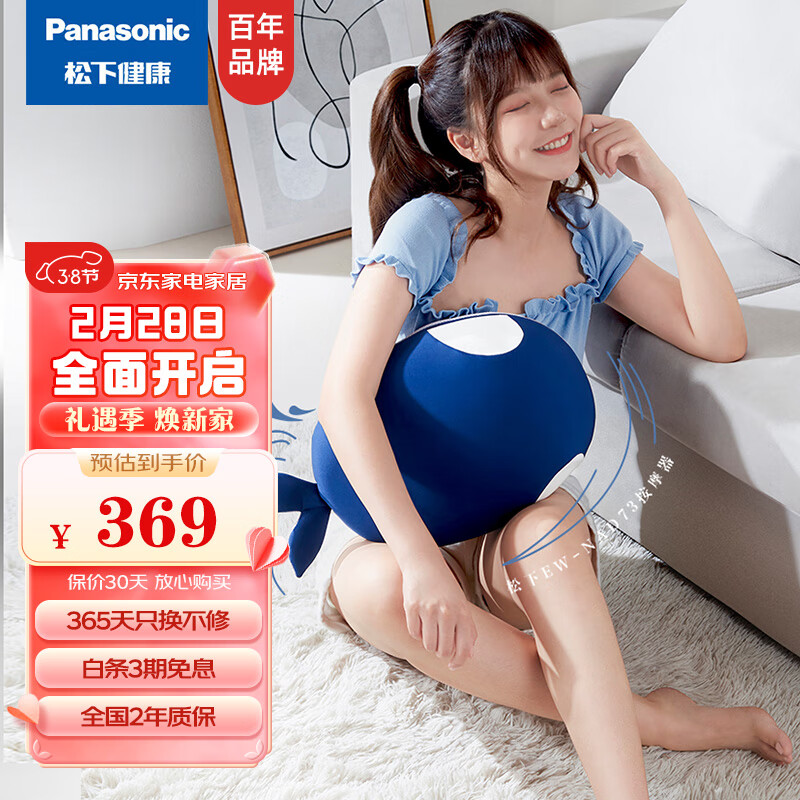 松下(Panasonic)小鲸鱼肩颈腰部按摩器多功能按摩抱枕家用按摩仪按摩枕 送父母 生日礼物情侣 年会礼品 EW-NAD73价格:409.00元!