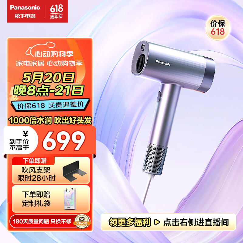 松下(Panasonic)高速吹风机家用大功率吹头发电吹风大风力速干护发纳诺怡护发新年礼物吹风筒紫色NW90绮光镭射紫价格:751.00元!
