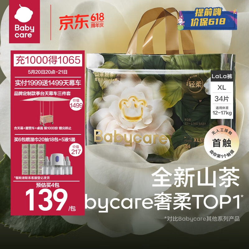 babycare拉拉裤山茶花苞裤轻柔裤XL34片(12-17kg)bbc婴儿尿不湿柔润舒缓价格:199.00元!