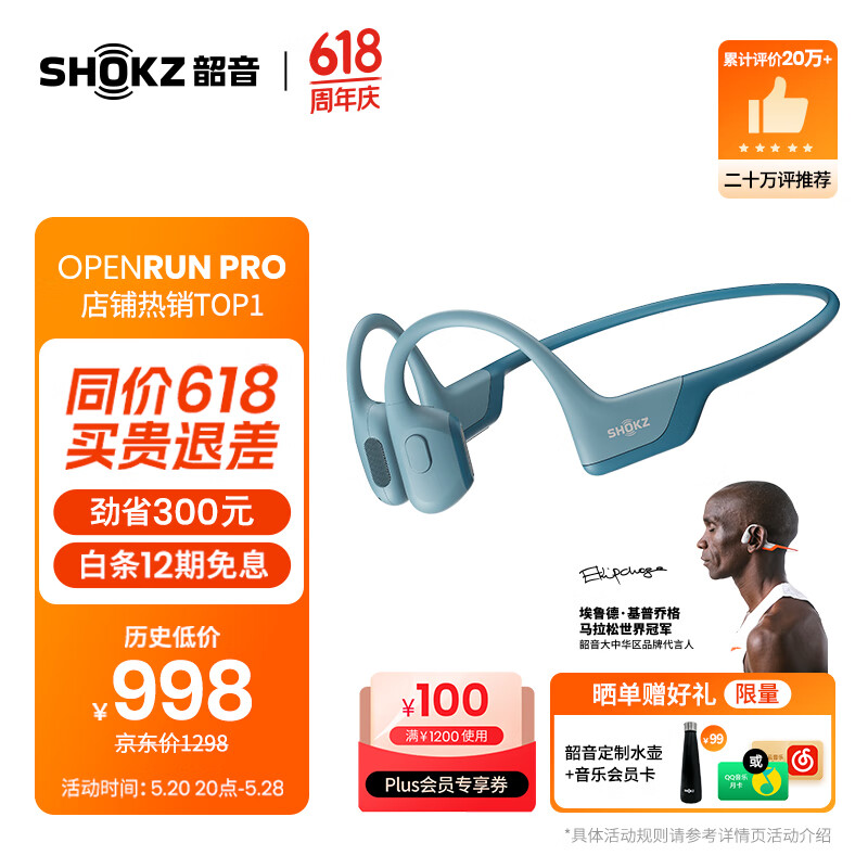 韶音(SHOKZ)【历史低价】OpenRun Pro骨传导蓝牙耳机开放式耳机运动无线骨传导耳机跑步不入耳佩戴S810/S811 牛仔蓝价格:998.00元!