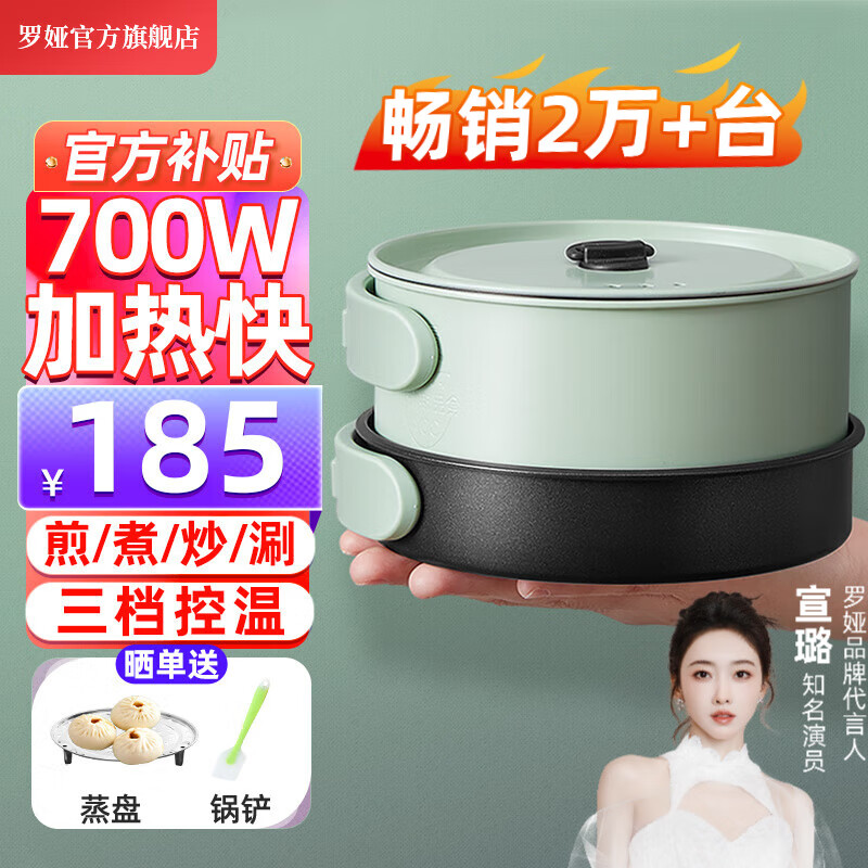 罗娅 便携式电煮锅折叠锅出差旅行锅分体式小电锅多功能锅迷你宿舍锅电热锅多用途锅小电火锅一人食 北欧绿(晒图领蒸盘+锅铲)价格:185.00元!