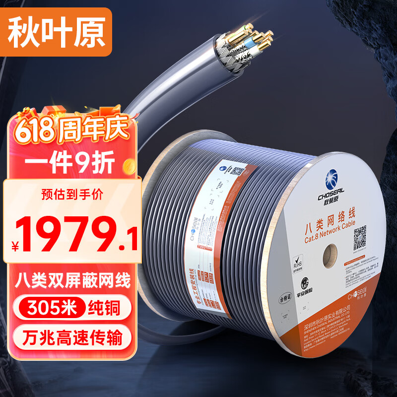 秋叶原(CHOSEAL)八类双屏蔽工程网线【电竞级0.64mm】Cat8 纯铜线芯40G万兆高速 灰色305米QS2680AT305价格:2199.00元!