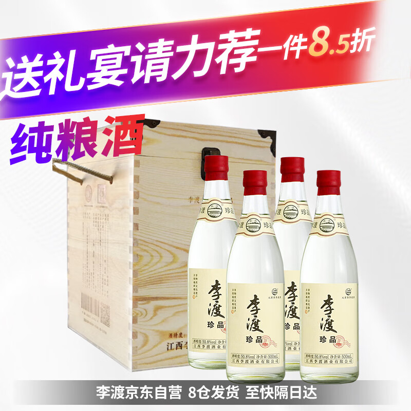李渡 珍品 兼香型白酒50.8度500ml*4瓶礼盒装高粱酒【年货送礼】价格:2183.00元!
