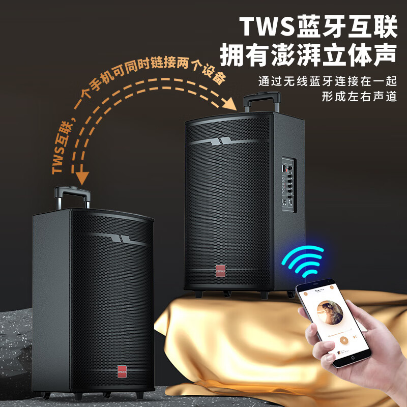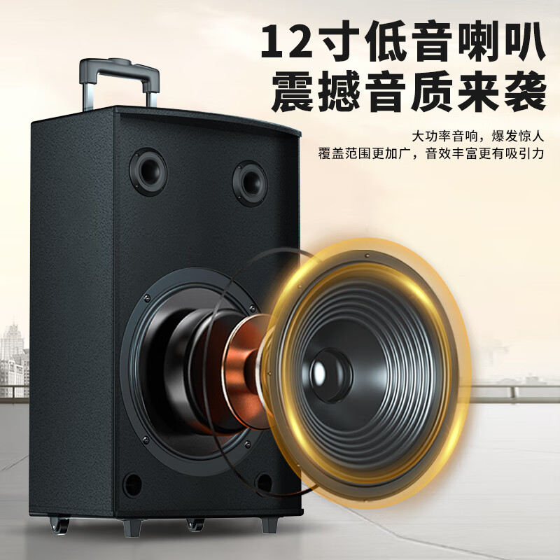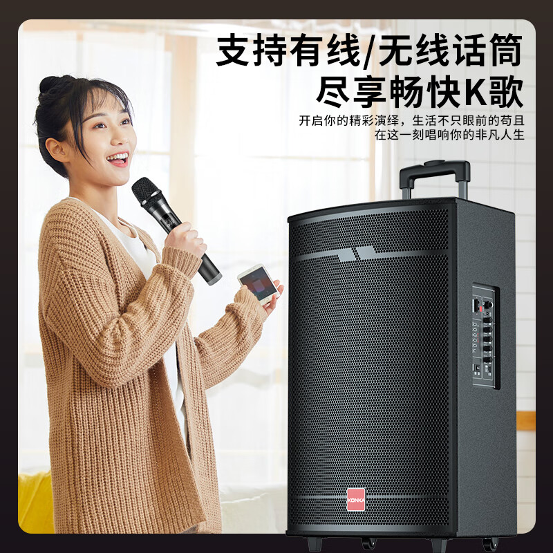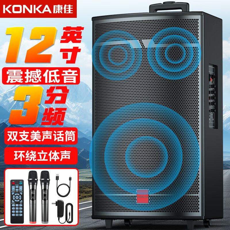 康佳(KONKA)D53 12英寸三分频大功率喇叭重低音广场舞音响移动家用户外K歌蓝牙拉杆便携式音箱无线双话筒价格:599.00元!