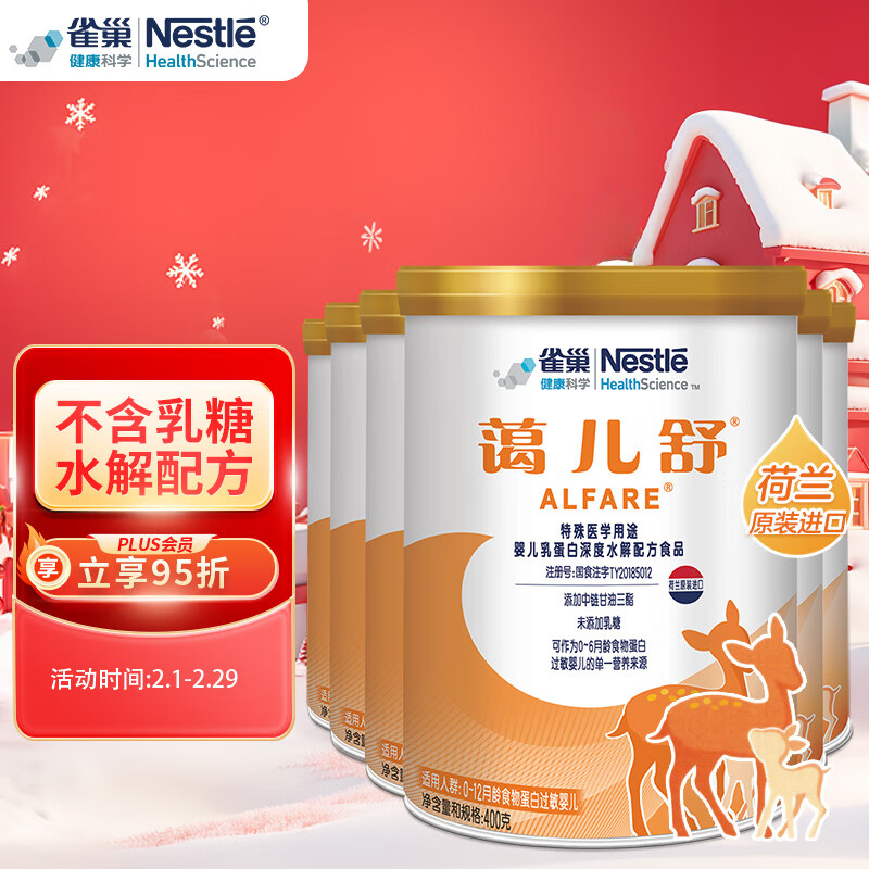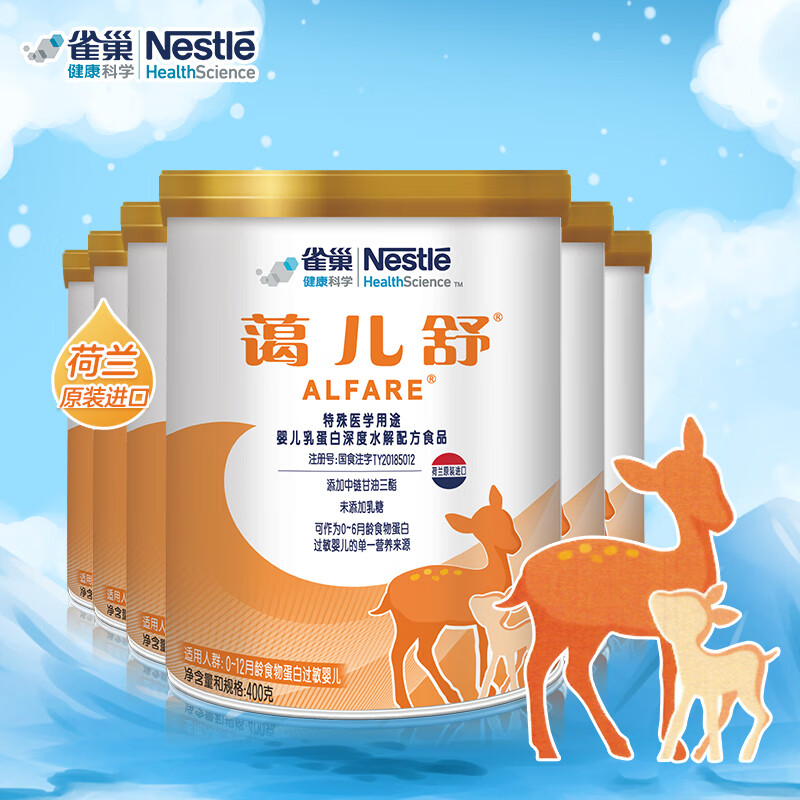 雀巢健康科学蔼儿舒 特殊医学用途婴儿乳蛋白深度水解配方食品400克*6囤货装0-12月龄食物蛋白过敏婴儿适用价格:2254.00元!