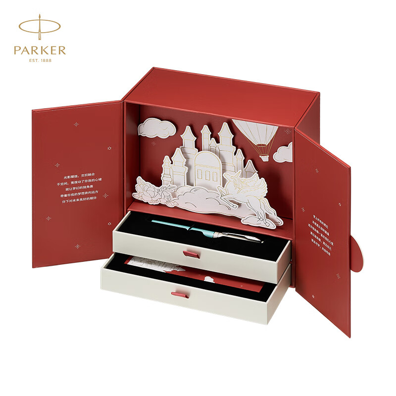 派克(PARKER)钢笔 签字笔 商务送礼学生男女生日礼物 文具 练字书法 威雅XL无畏蓝墨水笔+梦笔生花礼盒价格:506.00元!
