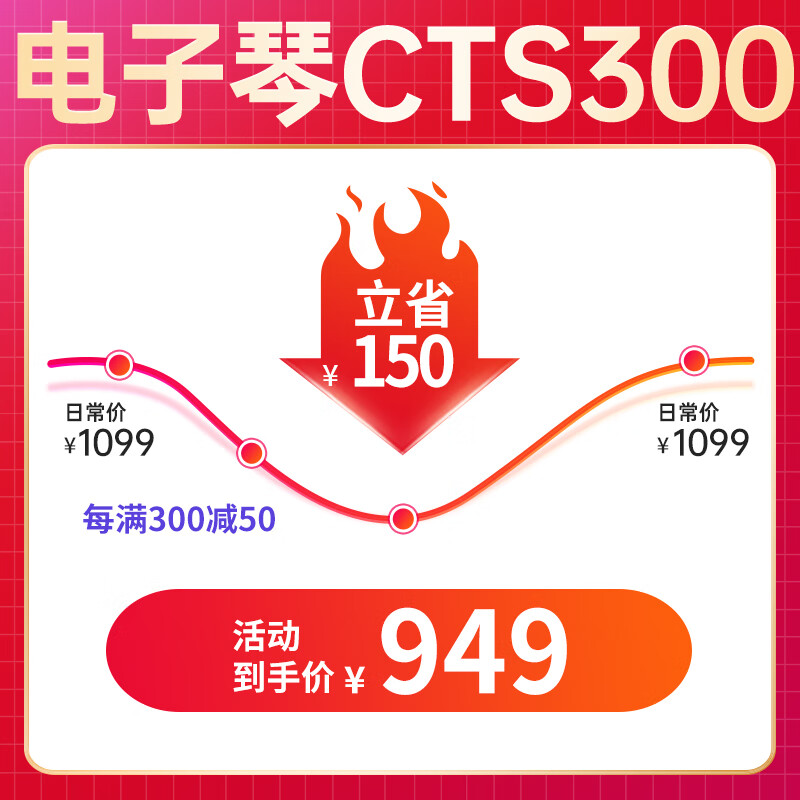 卡西欧(CASIO)电子琴CTS300儿童成人便携时尚潮玩儿童成人娱乐学习61键单机款价格:1099.00元!