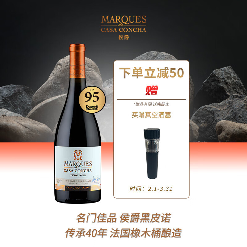 Concha y Toro干露侯爵进口特酿黑皮诺干红葡萄酒750ml单瓶 进口高端精品红酒价格:299.00元!