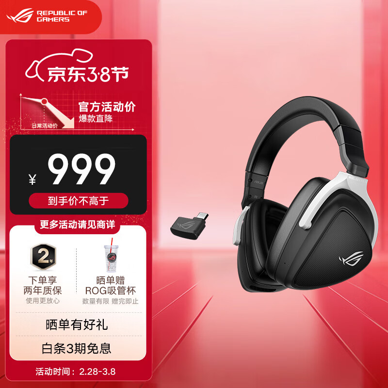ROG 棱镜s无线 游戏耳机 头戴式耳机 双模连接 蓝牙无线 环绕7.1音效 轻量化AI降噪麦克风ROG手机耳机价格:999.00元!