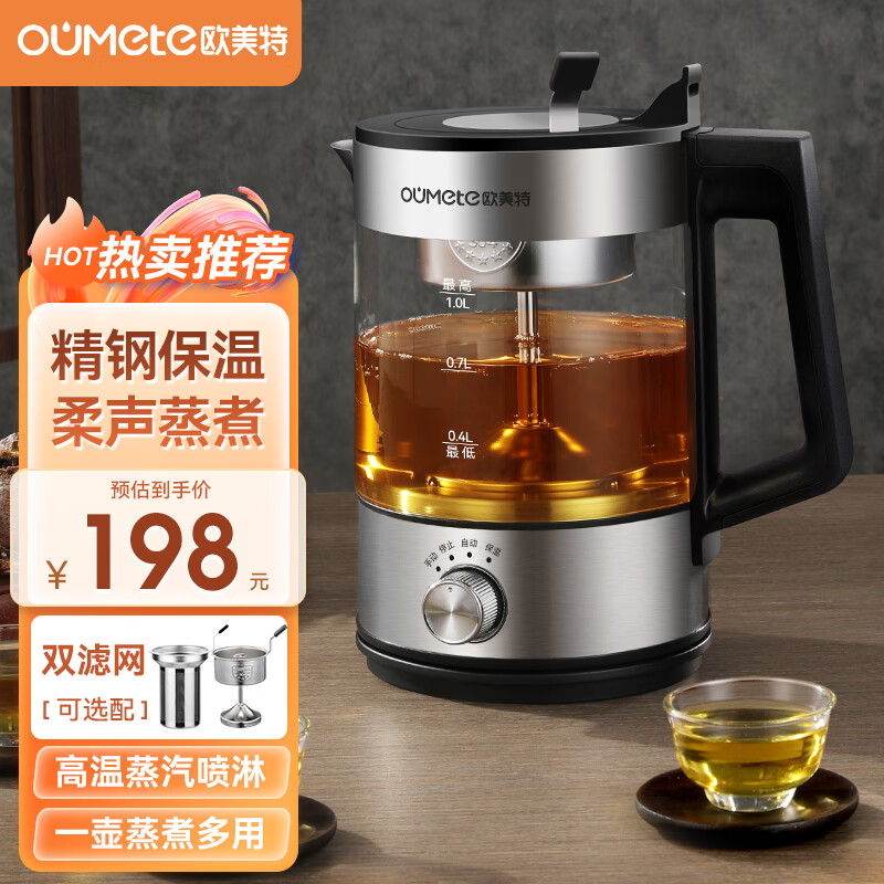 欧美特(OUMETE)煮茶壶煮茶器 喷淋式蒸汽恒温茶壶养生壶保温煮茶蒸茶壶烧水壶双网配置OMT-PC1019价格:198.00元!