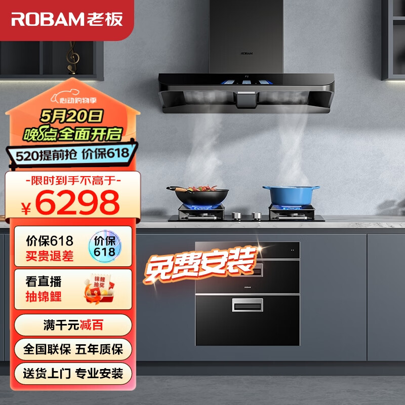老板(Robam)抽油烟机厨房多件套 钢琴家D3S双腔变频24风量欧式家用灶具消毒柜三件套62D3S+57B2DT+XZ716A价格:6698.00元!