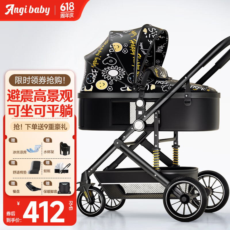 ANGI BABY婴儿推车可坐可躺可折叠新生儿减震婴儿车高景观双向手推车童车价格:469.00元!
