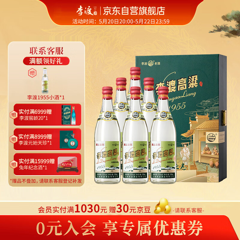 李渡 高粱1955 凌云之志 元窖香白酒 52度500ml*6瓶 整箱 江西特产价格:5860.00元!