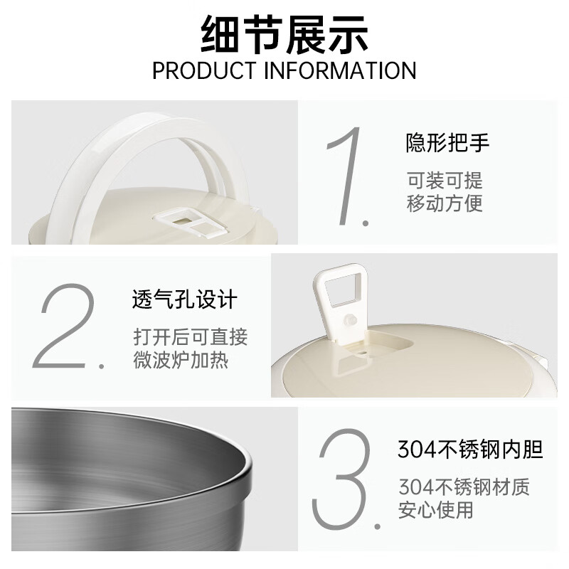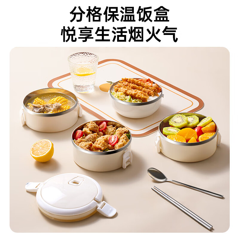 双枪304不锈钢保温饭盒 餐盒学生上班族多格独立4格饭盒价格:59.90元!