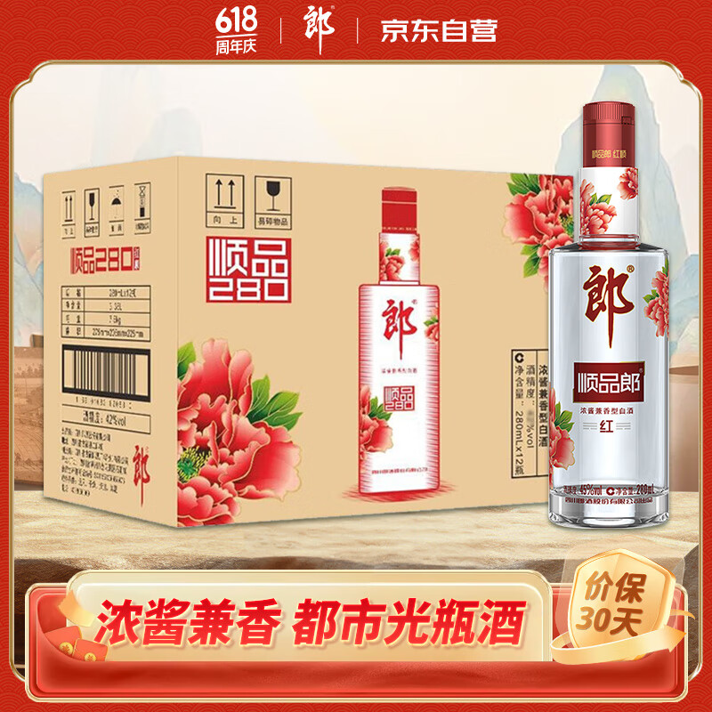 郎酒 顺品郎红顺 浓酱兼香型白酒 45度280ml*12瓶 整箱装价格:420.00元!